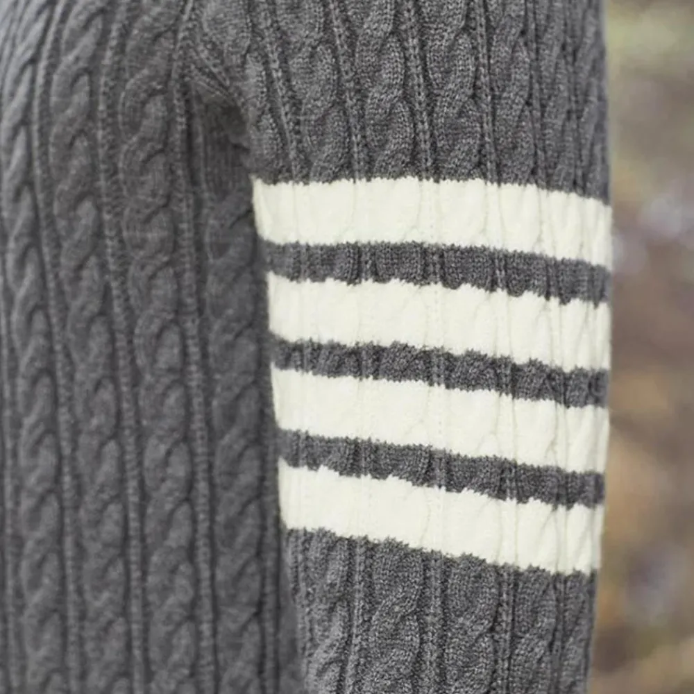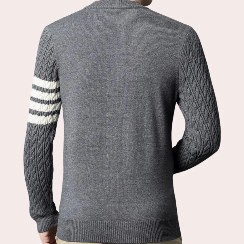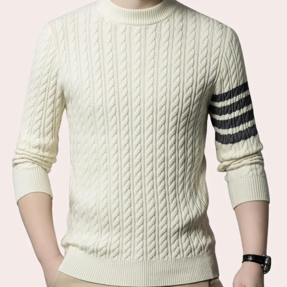 Met zijn elegante streeppatroon is de trui veelzijdig en past hij bij verschillende outfits. Het is een geweldige manier om een modieus tintje toe te voegen zonder te overdreven te zijn. Deze trui is ideaal voor mannen die de voorkeur geven aan een klassieke, maar moderne stijl.