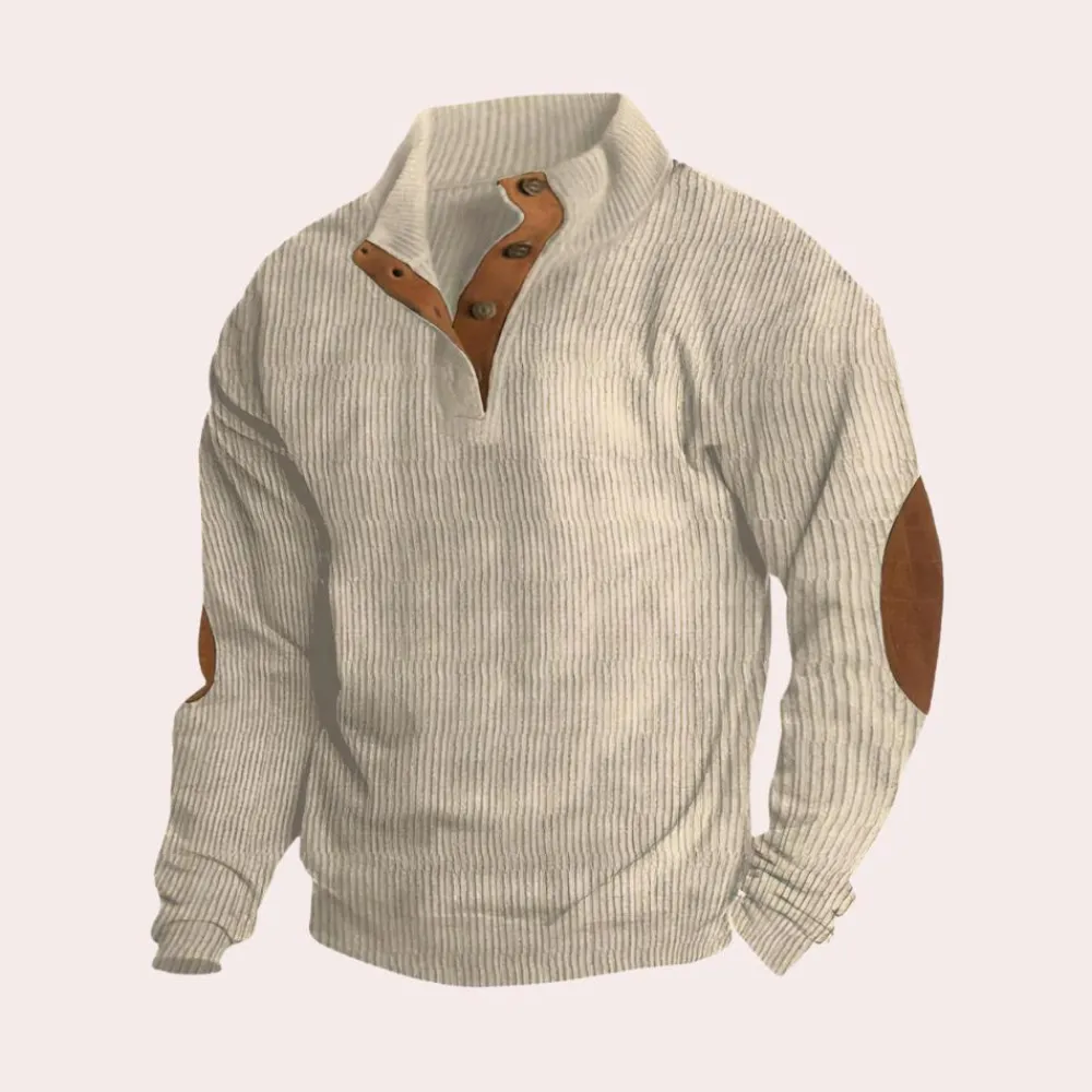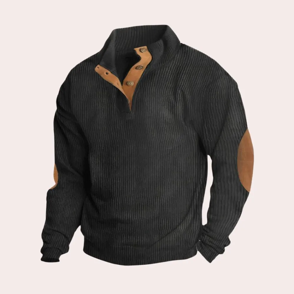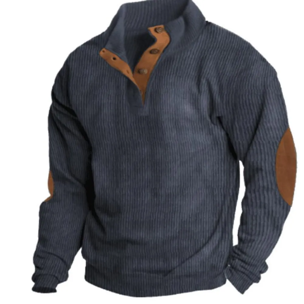 Verhoog je casual stijl met onze MALACHY Casual geribd sweatshirt voor mannen. Deze veelzijdige trui van zacht, ademend katoen biedt comfortabele warmte en is perfect om elke dag te dragen.Hij is gemaakt van een zachte en duurzame katoen van hoge kwaliteit. De lange mouwen en opstaande kraag bieden goede bedekking en warmte. De knoopsluiting op de borst maakt het mogelijk om de bedekking aan te passen. De geribde stijl en opstaande kraag zorgen voor een flatterende, getailleerde look, terwijl de katoen voor totaal comfort zorgt.